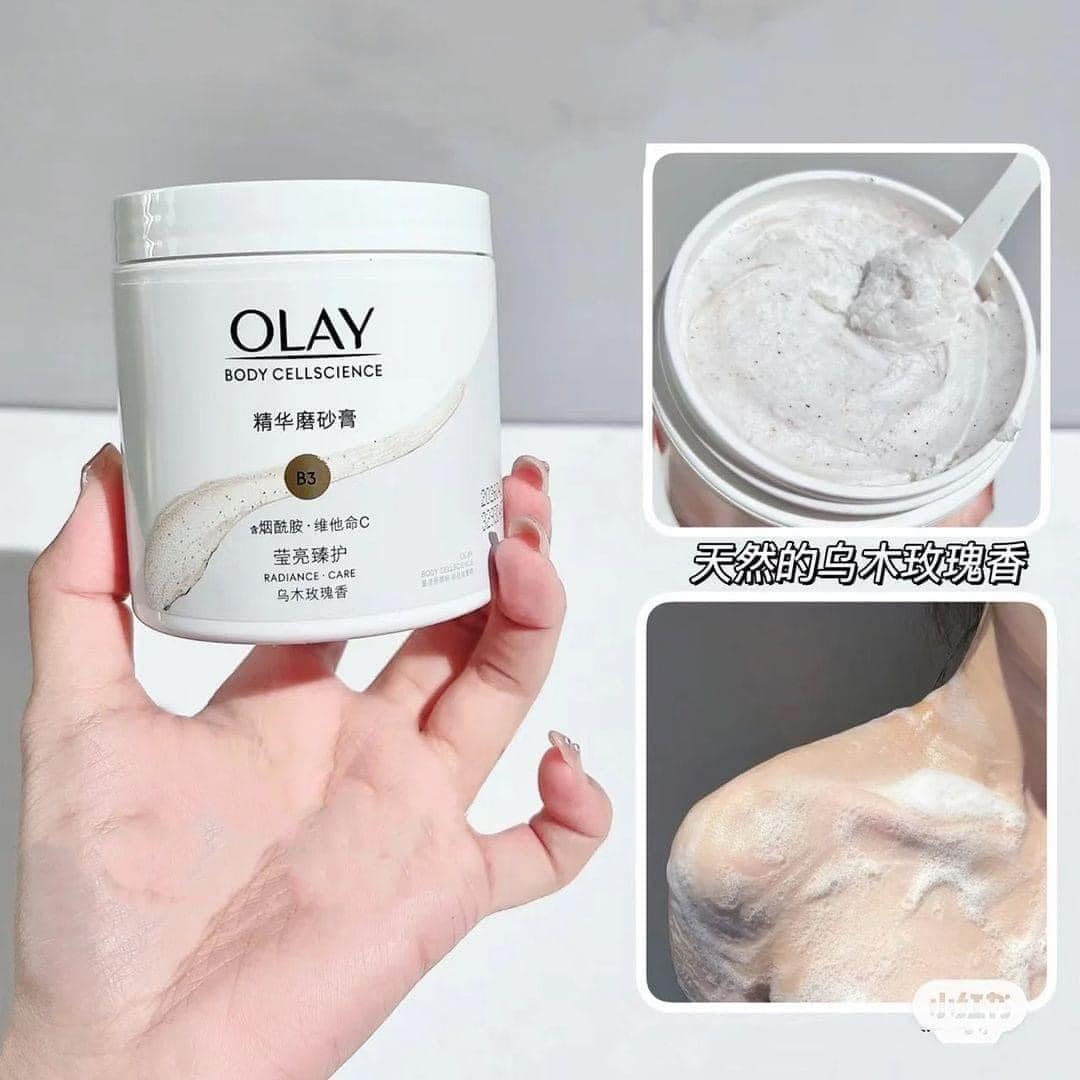 - Tẩy Tế Bào Chết Toàn Thân Olay Body Cellscience B3+ Vitamin C 200g với thành phần Niacinamide sản xuất trực tiếp Công nghệ Thụy Sĩ chiết xuất tinh khiết 99%, chống lão hoá, cấp ẩm cho da, giảm mụn lưng cơ thể, thu nhỏ lỗ chân lông và giúp da đều màu, trắng sáng.