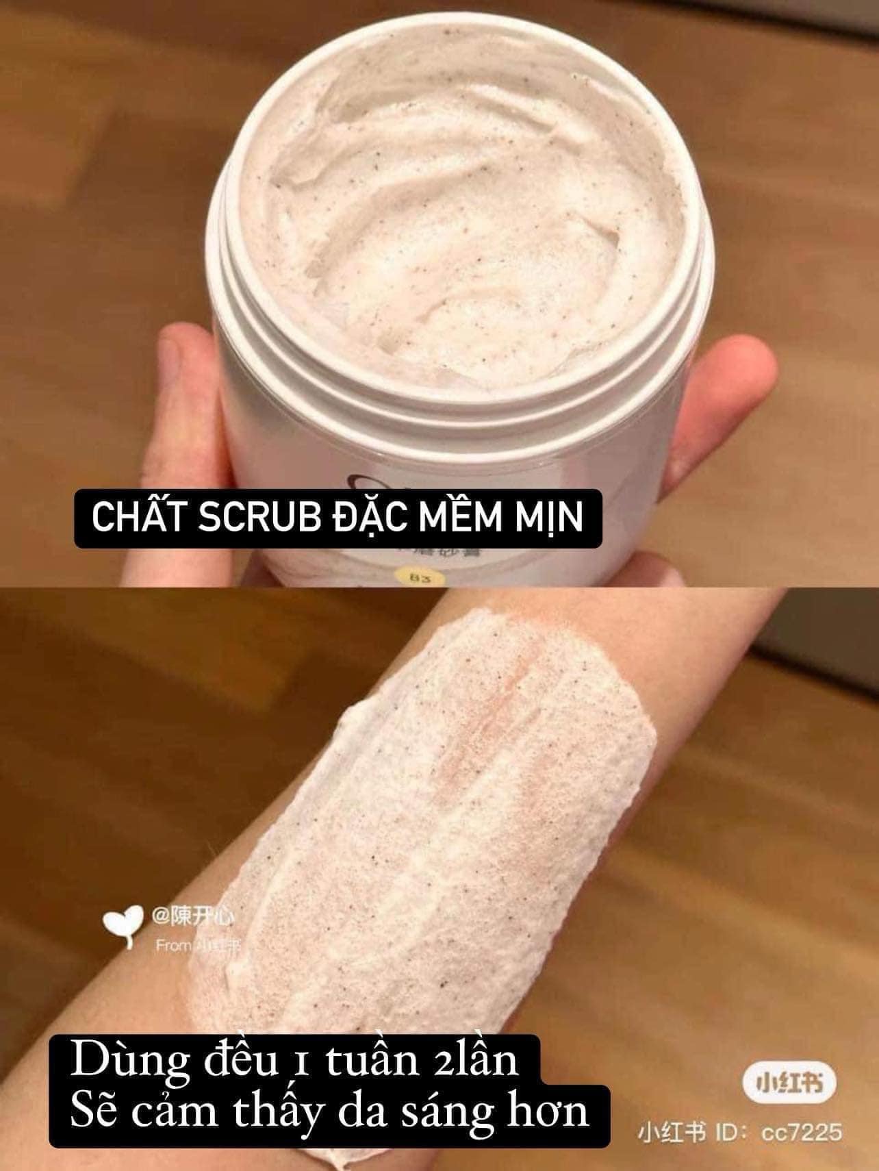 - Với kết cấu dạng scrub thì em nó có khả năng làm sạch da cơ thể một cách tối ưu, kèm theo đó là sự thư giãn cho da khi những hạt scrub tiếp xúc với da.